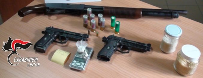 MORCIANO DI LEUCA – Nella sua abitazione un fucile a pompa calibro 12, di provenienza estera nascosto nel camino , 9 cartucce, due pistole a salve prive di tappo rosso, 3 grammi di cocaina avvolta in un involucro di cellophane e nascosta in un contenitore di vetro contenente del riso e un bilancino di precisione . Nei guai un 40enne nato a Casarano, ma residente a Morciano di Leuca. Dopo la perquisizione eseguita dai Carabinieri della Compagnia di Tricase insieme ai colleghi della stazione di Salve, per l’uomo è scattata le denuncia .
