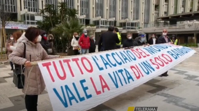 TARANTO – “TUTTO L’ACCIAIO DEL MONDO NON VALE LA VITA DI UN SOLO BAMBINO”. Lo striscione è sempre quello e va bene così, perché il messaggio è sempre lo stesso e dev’essere indelebile. Deve scavare nelle coscienze di tutti. L’associazione “Genitori tarantini” manifesta sul piazzale del centro direzionale Bestat, insieme ai medici. “Chiamiamo a raccolta tutti i cittadini che, come noi, non riescono a sopportare “la grande ingiustizia” che si sta perpetrando a Taranto. La situazione è molto grave e abbiamo bisogno che i temi come la giustizia, i diritti, calpestati in modo ignobile possano essere ristabiliti anche in questa città. Quindi riteniamo essenziale uscire di casa per poter raccontare al mondo la verità, pacificamente, mantenendo le distanze di sicurezza, registrando video, dirette, inviando comunicati stampa, potremo fare sentire la nostra voce. Viviamo tutti una fase di scoramento, è come se avessimo perso le forze, ma dobbiamo insistere, è importante”.
