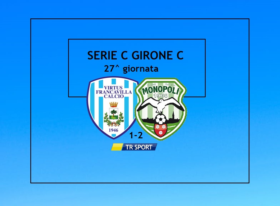 FRANCAVILLA FONTANA – Il derby della 27^ giornata del Girone C del campionato di serie C, tra Virtus Francavilla e Monopoli se lo aggiudicano gli ospiti che espugnano il Giovanni Paolo II con un secco 1 a 2.