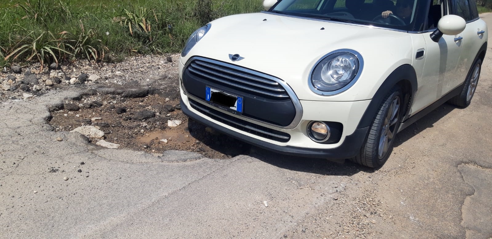 “Un cratere” come lo definisce lui. È proprio vero, e non è l’unica buca che costringe gli automobilisti a slalom impensabili -più di qualcuno ci ha rimesso le ruote- e che, soprattutto, è un pericolo serio per i motociclisti.