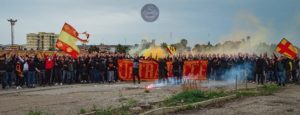 Prima con gli ultrà che riscaldano l’ambiente e caricano la squadra, sotto allo stadio.