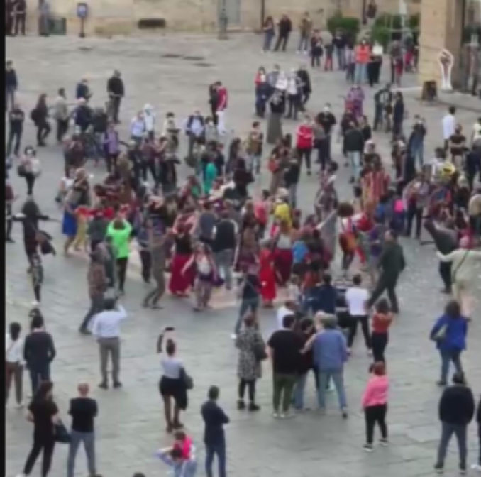 LECCE- Si sono riuniti in piazza S.Oronzo e sull’ovale hanno dato vita ad un improvvisato spettacolo di musica, danza ed esibizione di artisti di strada. Tante le persone riunite che si sono fermate ad ascoltare.