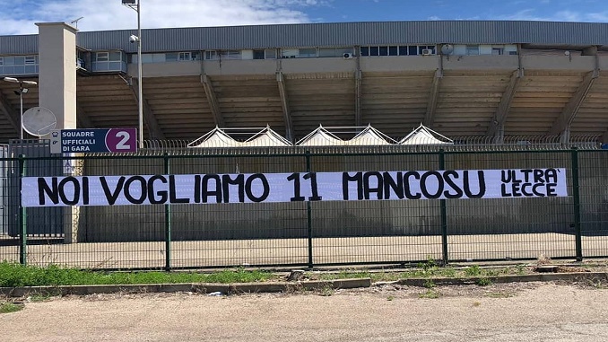 LECCE – Al termine della gara pareggiata con la Reggina per 2 a 2. che significa addio alla promozione diretta in A per il Lecce, ai microfoni di Dazn si presenta il capitano giallorosso, Marco Mancosu, che in settimana ha emozionato tutti con la sua rivelazione della battaglia che sta combattendo contro il cancro. Gli Ul con uno striscione, riconoscendo il suo grande valore hanno chiesto 11 Mancosu con uno striscione.