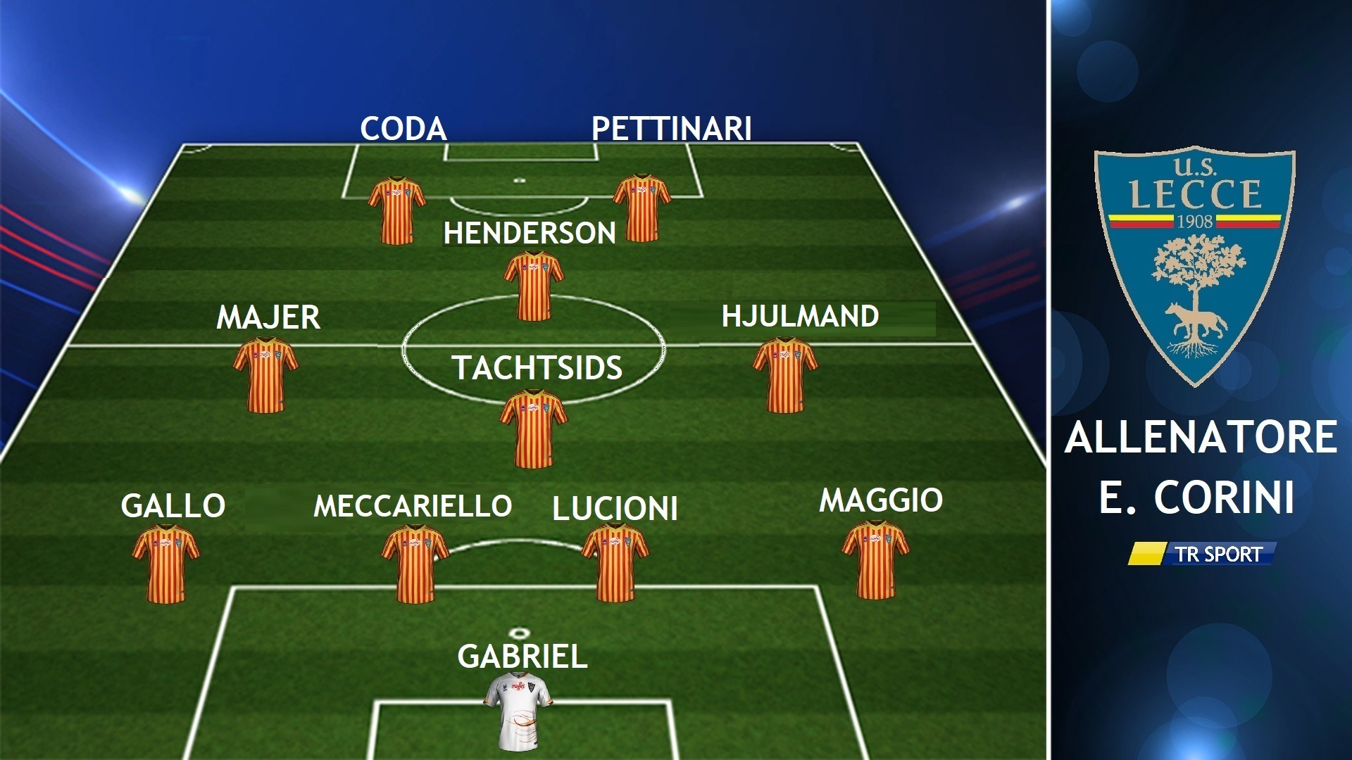 LECCE (4-3-1-2): Gabriel; Maggio, Lucioni, Meccariello, Gallo; Majer, Tachtsidis, Hjulmand; Henderson; Coda, Pettinari. Allenatore: E. Corini