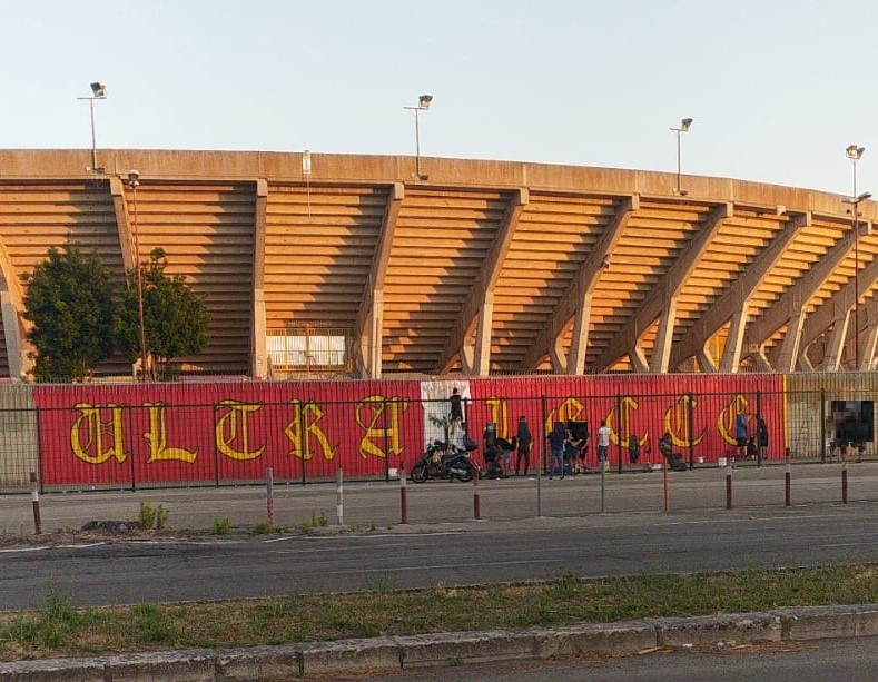 LECCE – Sfidando il caldo un gruppo di volontari, di Ultrà del Lecce, hanno colorato e firmato un pezzo dell’ovale dello stadio Via del Mare, ai piedi della Curva Nord, il loro tempio, la loro casa, dalla quale sono stati costretti a rimanere lontani a causa dell’emergenza sanitaria.