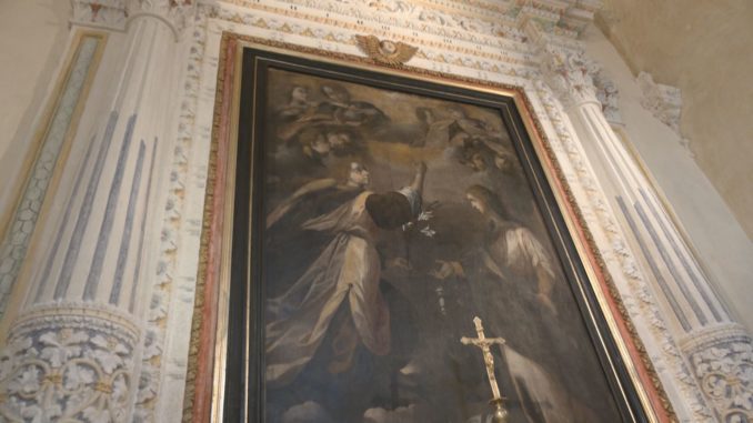 PRESICCE- Il dipinto raffigura l’Annunciazione di Maria Vergine, un olio su tela del 1500 attribuito al pittore napoletano Girolamo Imparato. È sempre stato ospitato nella Cappella dell’ Annunziata del palazzo Ducale di Presicce, costruita dai principi Bartilotti nel 1600 e qui è tornato dopo un certosino lavoro di restauro. La tela è stata restituita alla comunità salentina con una cerimonia e con la benedizione  da parte del parroco, don Francesco Cazzato, che ha voluto fortemente il restauro.