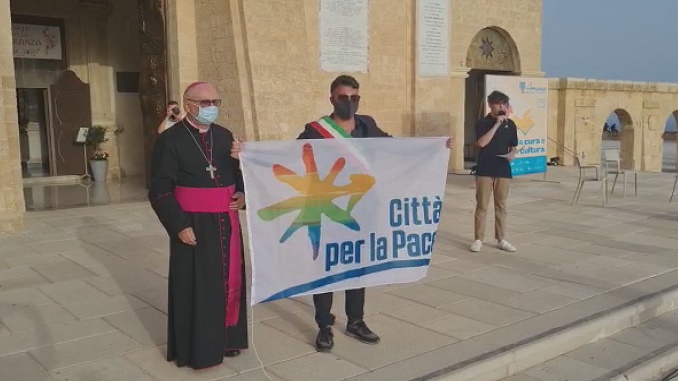 Esponendola nelle residenze municipali, questo vessillo ricorderà l’impegno a promuovere durante l’anno dei momenti di partecipazione e di riflessione, soprattutto delle giovani generazioni sui temi della giustizia, della pace e della salvaguardia del creato, temi generatori dell’evento internazionale di “Carta di Leuca” di cui l’evento di ieri si propone come preludio. La bandiera è andata ad Alessano, Andrano, Aradeo, Calimera, Castrignano del Capo, Castro, Corigliano d’Otranto, Corsano, Gallipoli, Lecce, Matino, Melpignano, Morciano di Leuca, Nardò, Otranto, Porto Cesareo, Salve, San Pancrazio Salentino, Santa Cesarea Terme, Taranto, Taviano, Tricase, Ugento e Veglie.