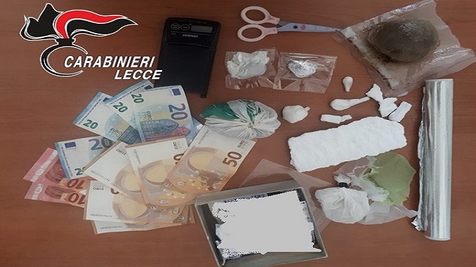 LECCE – Detenzione a fini di spaccio di sostanza stupefacente , con quest’accusa è finito in carcere un 42enne leccese. L’uomo, a seguito di perquisizione personale e domiciliare è stato trovato in possesso di 12 grammi di cocaina, 100 di hashish, 22 di marijuana, 100 di sostanza da taglio, 350 euro in contanti e materiale per il confezionamento delle dosi . L’uomo è ai domiciliari.