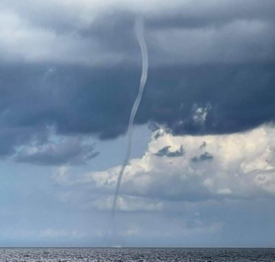 GALLIPOLI- Una tromba d’aria ben visibile sul mare ha raggiunto in tarda mattinata Gallipoli che è stata colpita, come altre località del Salento, da un’ondata di maltempo. Nonostante le previsioni avessero annunciato da tempo l’arrivo di una forte perturbazione, pioggia e vento hanno sorpreso comunque molta gente in spiaggia.