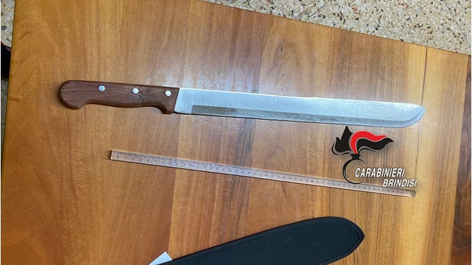 ORIA – A passeggio per le vie della città con un machete. A Oria, i Carabinieri della locale stazione hanno denunciato un ragazzo di 24 anni del posto per porto abusivo armi. Il coltellaccio è stato sequestrato. Non si conosce il motivo per cui il giovane camminasse per strada con l’arma addosso.