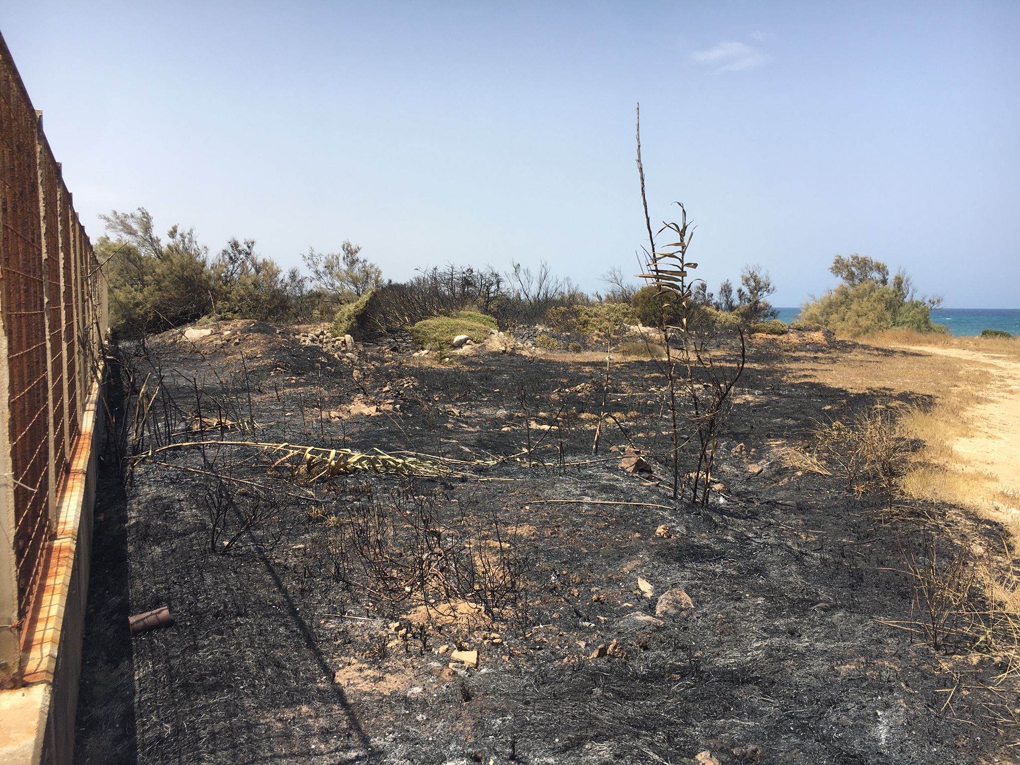 E’ andato completamente distrutto il “Parco Sbitri”, realizzato anni fa dall’Amministrazione Comunale e poi lasciato in uno stato di completo abbandono. E la stessa cosa è avvenuta sul lato-mare del Villaggio di Acque Chiare, tuttora sotto sequestro per la ben nota vicenda giudiziaria. L’ennesima conferma che non basta apporre un cartello con il provvedimento giudiziario. Qualcuno deve occuparsi della sua manutenzione per evitare che erbacce alte due metri contribuiscano ad alimentare gli incendi. La conseguenza è che è andato tutto a fuoco, con danni economici incalcolabili. Ed hanno rischiato anche i bagnanti degli stabilimenti balneari della zona, molti dei quali sono stati obbligati a spostare le auto in sosta sulla litoranea per evitare che finissero nel rogo.