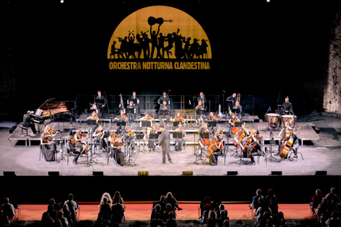 L’Orchestra Notturna Clandestina è un’orchestra sinfonica indipendente, fondata da Enrico Melozzi nel 2016, che si esibirà a Melpignano con un organico di 38 elementi, con l’obiettivo di trasmettere i valori universali della musica classica al maggior numero di persone possibile, tenendo in particolare considerazione i giovani e le fasce di pubblico meno abbienti. Formata da musicisti convinti che gli obiettivi della musica classica siano assolutamente popolari e non elitari. L’Orchestra Notturna Clandestina, il cui nome prende spunto dal Teatro Clandestino di Kantor (drammaturgo polacco che decise di fondare questa sorta di Teatro durante il Nazismo, che proibiva le libere manifestazione culturali), ha inciso per importanti etichette come DECCA (al fianco di Giovanni Sollima, padrino e co-fondatore dell’orchestra), ed è stata invitata a partecipare a festival prestigiosi come Il Ravenna Festival di Riccardo Muti, Il Festival D’Annunziano, Il Festival Pucciniano di Torre del Lago, Il Festival “Musica a Palazzo Venezia” di Roma, I Concerti del Quirinale alla Cappella Paolina in diretta su Radio3, Macerata Opera Festival allo Sferisterio, e molti altri, diventando quindi uno dei punti di riferimento della musica classica nazionale. Nell’estate del 2020 è protagonista su RAI5 di un documentario prodotto da RAI CULTURA, intitolato “Sinfonie di Rinascita” nel quale compare al fianco di orchestre celeberrime e istituzioni storiche del panorama nazionale e internazionale (Orchestra Filarmonica di Santa Cecilia, Orchestra Cherubini, Orchestra del Teatro dell’Opera), in un focus sulla musica dopo il lockdown e sull’importanza della cultura in un periodo così difficile come quello che stiamo oggi vivendo. L’Orchestra annovera nel suo organico anche giovanissimi musicisti under 20 e under 30, affiancati dai maggiori professionisti della capitale e vanta una importante venatura multietnica, in quanto sono presenti giovani musicisti provenienti da svariate parti del mondo (Brasile, Argentina, Iran, Russia, Spagna, Polonia, Portorico, Colombia, Argentina). Questa multietnicità è fondamentale nel lavoro di ricerca di un suono totalmente nuovo che di fatto risulta immediatamente fruibile da un pubblico variegato: la musica più elevata e raffinata del repertorio classico raggiunge gli spettatori più eterogenei, creando di fatto una sorta di comunità culturale composta dai musicisti e dagli ascoltatori, in costante sviluppo e crescita esponenziale. Nel mese di maggio 2021, l’orchestra si espande con la fondazione di una seconda Orchestra Notturna Clandestina con sede a Milano, composta da musicisti che gravitano nell’hinterland milanese, che condividono gli stessi principi fondanti della compagine romana, diventando di fatto la prima orchestra diffusa in Italia.