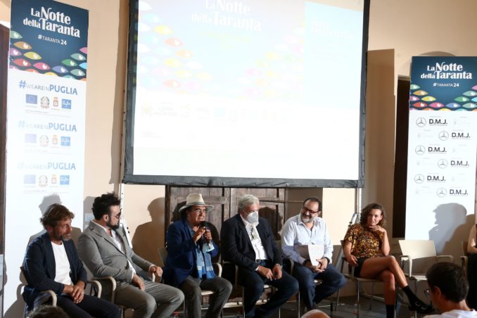 Presenti anche il presidente della fondazione notte della taranta Massimo Manera, il sindaco di Melpignano Valentina Avantaggiato e il presidente della Regione Puglia Michele Emiliano.