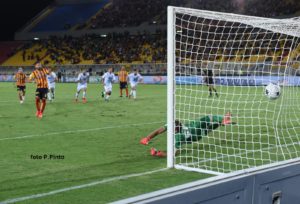 Al 37° Gendrey recupera palla e trova lo spazio per Coda che calcia al volo, Scaglia smorza e Gori para. Dalla sala video richiamano l’arbitro, che va a controllare e concede il rigore al Lecce, Scaglia ha toccato col braccio.