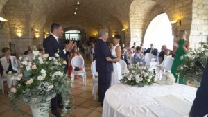 MESAGNE-Una giornata di pioggia e quindi sicuramente un “sì” fortunato. Il nostro collega giornalista Mimmo Consales si è unito in matrimonio oggi con la sua Gabriella Carella, compagna di vita da otto anni. Mimmo e Gabriella, emozionatissimi, si sono sposati nel pomeriggio con una cerimonia con rito civile celebrata dal sindaco di Mesagne Toni Matarrelli nella tenuta Moreno a Mesagne.