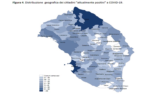 Aumentano, di contro, i Comuni Covid Free: da 13 a 15. E sono Bagnolo, Caprarica, Cannole, Carpignano, Nociglia, Palmariggi, Patù, Salve, Seclì, Spongano, Sternatia, Tiggiano,Tuglie, Uggiano e Zollino.