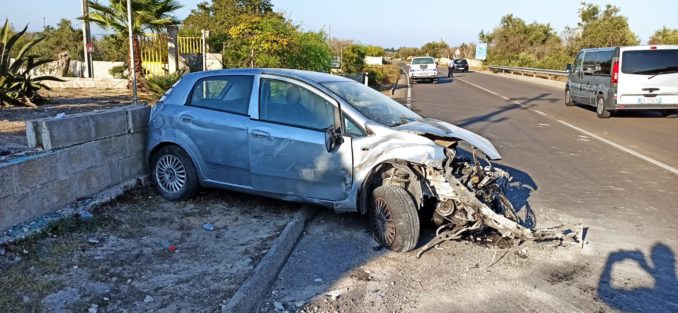 MELENDUGNO- Ha perso il controllo della sua auto ed è andata a sbattere più volte contro un muro. Una donna di 59 anni, R.V., è stata soccorsa in codice rosso. E’ accaduto nel pomeriggio, poco prima delle 16, lungo la strada che collega Melendugno a San Foca, arteria che la donna, residente a San Foca ma nata e cresciuta in Belgio, stava percorrendo in direzione della marina. La Fiat Grande Punto intestata al compagno è andata completamente distrutta nella sua parte anteriore, dopo essera carambolata sul muretto in blocchi di una recinzione, fermando la sua corsa di traverso sulla carreggiata, all’altezza del cantiere nautico Petrachi.