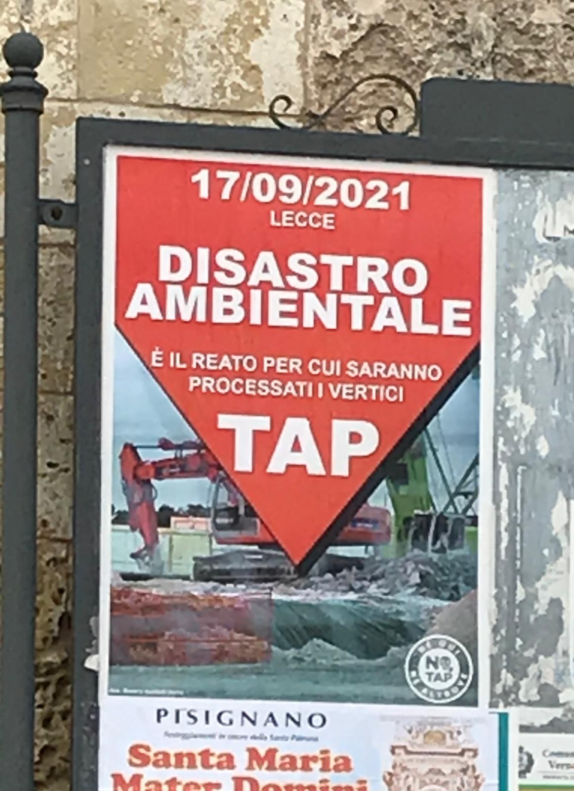 Intanto, la battaglia dei noTap non si ferma: gli attivisti hanno tappezzato le bacheche di diversi comuni del Salento per informare che vi è un processo in corso a carico della società Tap per disastro ambientale. La nuova udienza è fissata per questo venerdì 17 settembre e sarà trasmessa anche in diretta sul canale YouTube del movimento noTap.
