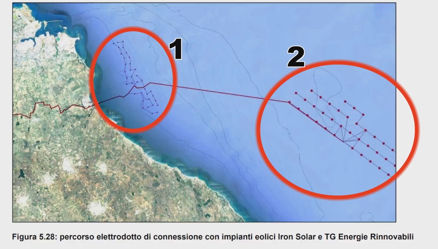 Dell’impianto della TG Energie Rinnovabili di Ravenna, già nota nel Salento per progetti eolici a terra e per quello bocciato della mega centrale a biomasse a Cavallino, il progetto della Iron Solar sfrutterebbe il percorso cavidotto marino (posizionerebbe il suo accanto al primo), come si evince dalla documentazione depositata, per poi proseguire a terra con un ulteriore elettrodotto con allaccio alla stazione elettrica Terna di Brindisi Sud.