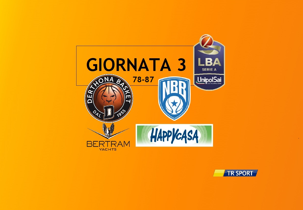 BERTRAM DERTHONA BASKET TORTONA–HAPPY CASA BRINDISI: 78-87 (18-24, 42-44, 63-66, 78-87)