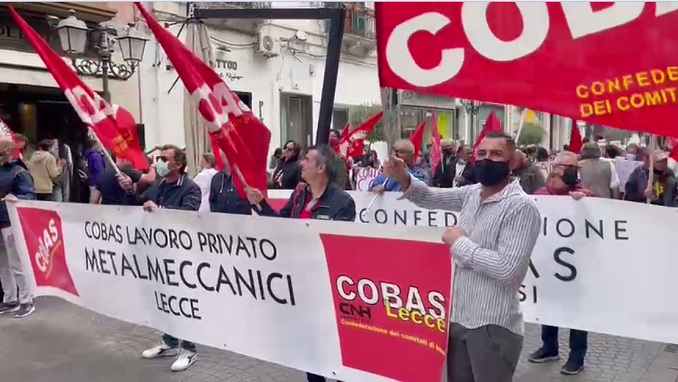 Il Sindacato Cobas di Lecce ha raggiunto la capitale. “Andrà tutto bene: così ci dicevano e così hanno provato a convincerci – si legge nelle motivazioni a monte della protesta- Ma è sotto gli occhi di tutti l’utilizzo capitalistico della pandemia per promuovere piani di ristrutturazione produttiva già da tempo auspicati dalle governance dell’UE e dal Fondo Monetario Internazionale: un Patto per l’Italia che và verso una riforma peggiorativa per le lavoratrici e i lavoratori su pensioni, ammortizzatori sociali e politiche attive del lavoro, con l’ampliamento della libertà di utilizzo di somministrazioni di manodopera e contratti a termine, l’introduzione del Green Pass per lavorare che scarica i costi della sicurezza sulle lavoratrici e i lavoratori che scelgono di non vaccinarsi, la velocizzazione delle procedure sulle gare d’appalto che evitano i controlli necessari e favoriscono così le mafie”. Sul fronte sanità si denuncia poi “la continuità con una politica ultradecennale di tagli e privatizzazioni”. Al Governo adesso si chiedono risposte urgenti su tutti i fronti.