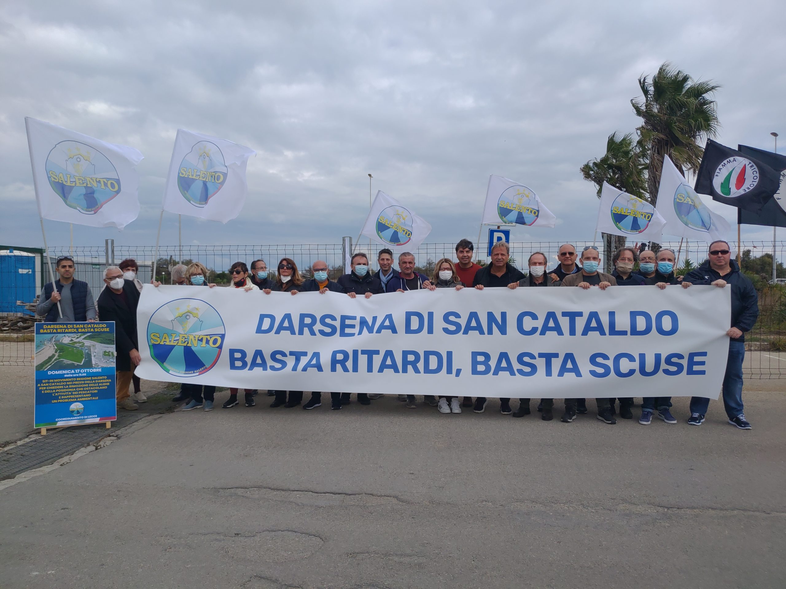 A dire basta ai ritardi sono i movimenti civici, il Movimento Regione Salento in testa, e poi La voce di Lecce, Idee e rinnovamento, Vivere Lecce, I love San Cataldo, Federazione Imprese Demaniali, e anche il centrodestra che, unito, si è ritrovato in sit-in davanti al cantiere.
