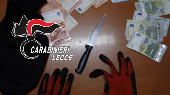 VEGLIE – Passamontagna, guanti, coltello in pugno: rapina la tabaccheria e, pochi istanti dopo, viene preso dai carabinieri.
