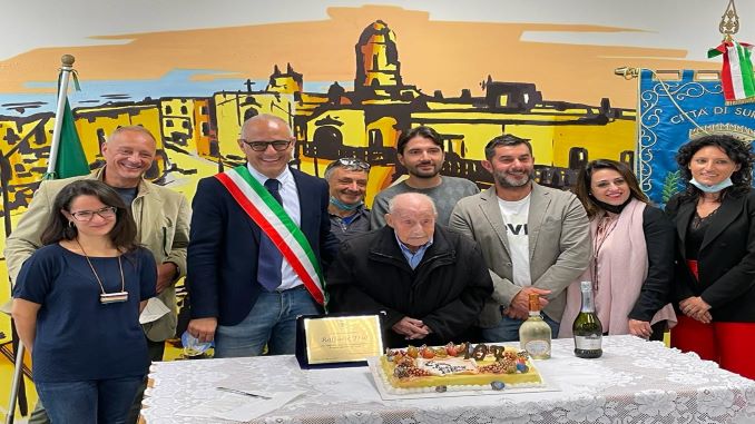 SURBO – Grande emozione a Surbo, oggi, dove nonno Raffaele Trio ha spento le sue prime 107 candeline! È stato festeggiato dall’amministrazione comunale nella Sala Consiliare del Palazzo Municipale. Il nonnino, elegante e allegro, è stato accompagnato dai familiari. Per lui una targa, ma anche torta e spumante.