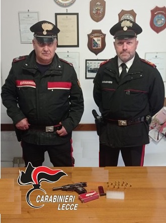 L’immediato l’intervento dei carabinieri, con una pattuglia del Radiomobile della Compagnia di Casarano, ha consentito, dopo un breve inseguimento, di raggiungere e bloccare il fuggitivo a Racale, in via Ginestre, e anche di recuperare una pistola cal. 9 con un colpo in canna. L’uomo aveva gettato l’arma dal finestrino furante la fuga. Dalla perquisizione dell’auto sono venuti fuori altri 15 proiettili dello stesso calibro. Per lui sono scattati i domiciliari.