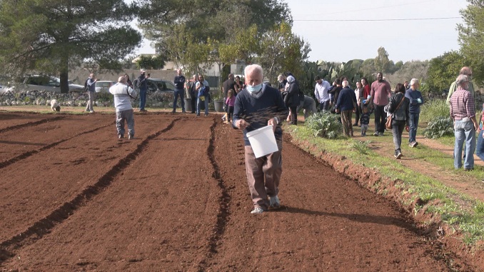 CASTIGLIONE D’OTRANTO – Quest’anno, il rito della semina è dedicato ad Antonio Linciano, docente di Taranto e attivista di Casa delle Agriculture scomparso un anno fa. È per lui la semina collettiva che porta con sé una novità importante: salgono infatti a 45 gli ettari di terra sottratti all’abbandono per essere coltivati a cereali antichi con metodi naturali. Ciò è possibile grazie ai patti di filiera locale ideati da Casa delle Agriculture e che sono stati ora firmati pubblicamente in occasione di “Chi semina utopia raccoglie realtà”, grande festa rurale giunta alla sua ottava edizione e che si tiene presso il Vivaio dell’inclusione “Luigi Russo”, a Castiglione d’Otranto, frazione di Andrano.
