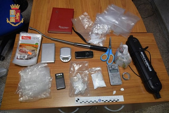 Inoltre, presso l’abitazione, sono state sequestrate delle dosi singole di cocaina, già pronta per la cessione. oltre a vari fogli dattiloscritti con associazione di nomi e cifre; tre bilancini elettronici di precisione e tutto il necessario peril confezionamento della sostanza. Nella sua effettiva residenza è stata rinvenuta una dose di cocaina , un altro bilancino e tremila euro in contanti.