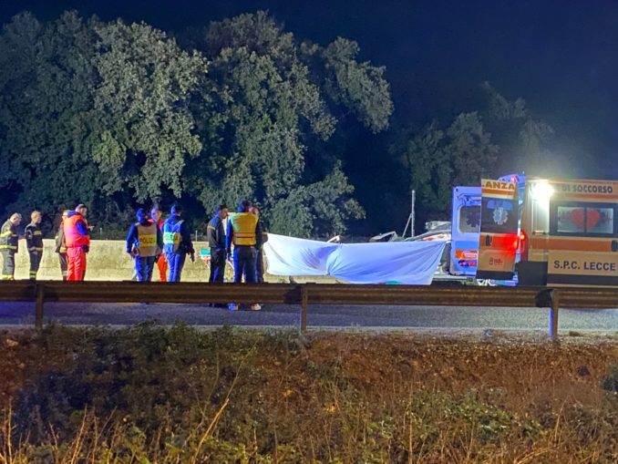 LECCE-Grave scontro in serata, alle 19 circa, sulla statale 613 Brindisi-Lecce all’altezza dello svincolo Surbo-Trepuzzi. Quattro le auto coinvolte: una Ford Fiesta, una Reanault Clio, una Mercedes ML e una Peugeot 3008. In quest’ultima viaggiava una famiglia con padre madre e due bambini. L’uomo, Vito De Santis,  50anni di Alezio, è morto tra le lamiere. Purtroppo per lui non c’è stato nulla da fare. La mamma e i due bambini sono rimasti feriti e trasportati al Vito Fazzi in codice giallo. Le condizioni della donna sarebbero critiche. I bambini hanno riportato dei traumi agli arti inferiori.