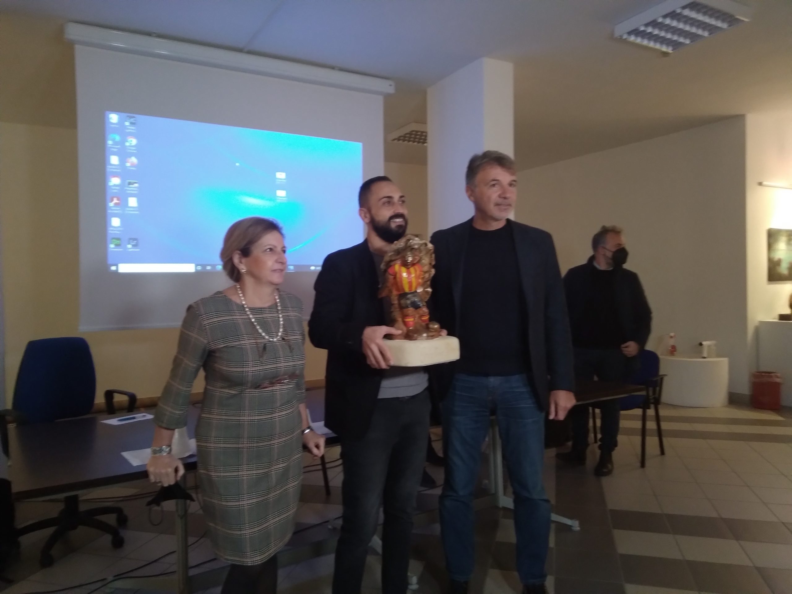 LECCE (di Carmen Tommasi) – Lo sport è impegno, passione, dedizione e determinazione: è questa la lezione più importante da seguire, da condividere e da diffondere. Serve impegno e buona volontà per raggiungere i propri obiettivi. Questo è solo uno dei tanti messaggi lanciati dalla dirigente Tiziana Paola Rucco del Liceo Artistico e Coreutico Ciardo-Pellegrino di Lecce che ha ospitato nel proprio istituto l’allenatore dei giallorossi Marco Baroni e il direttore generale Giuseppe Mercadante. Si è affrontato con cura e approfondimento il tema legato alla tecnologia applicata alla preparazione atletica. La scuola ha, poi, omaggiato il club di Via Colonnello Costadura con un dono molto prezioso, un oggetto unico di origine giapponese, simbolo di prosperità.