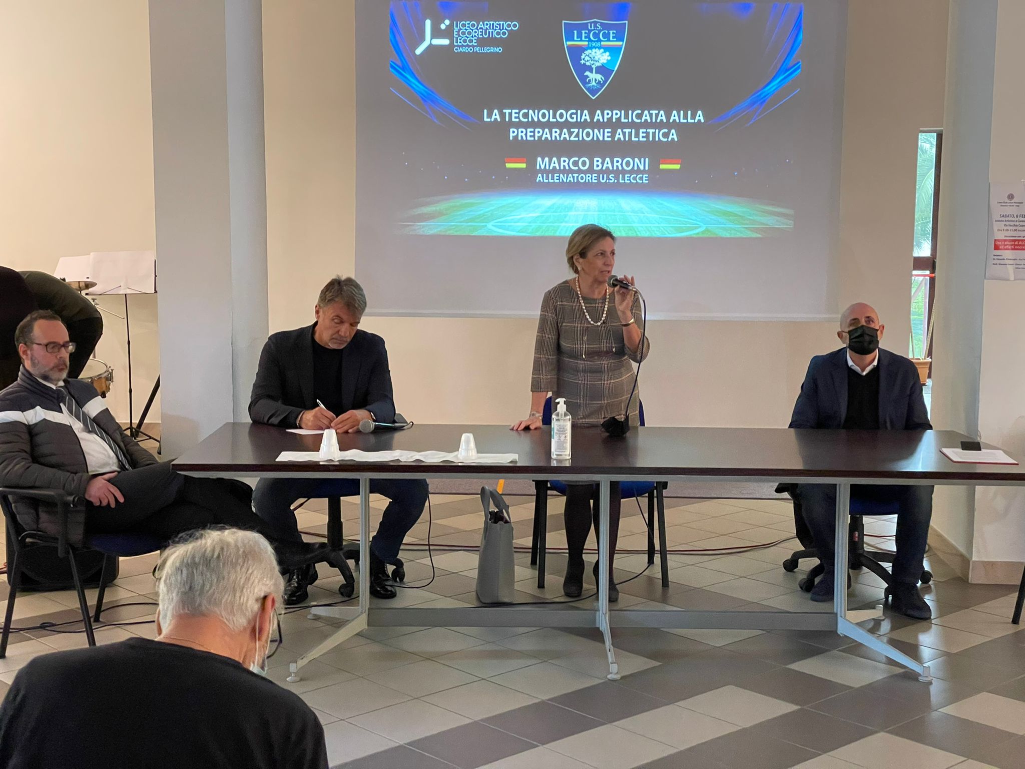 L’evento, che si è tenuto nell’aula magna della sede centrale della scuola, fa parte delle tante iniziative del Liceo per arricchire l’offerta formativa ed è stato organizzato dal Dipartimento di Scienze Motorie con il coordinamento dei professori Angela Bruno e Antonio Metrangolo. Il tutto alla presenza di un nutrito gruppo di entusiasti e emozionati studenti. L’incontro è stato moderato dal giornalista Pierandrea Casto ed è stato introdotto dai saluti dell’Assessore allo sport del Comune di Lecce, Paolo Foresio. Il tecnico giallorosso nella sua lezione agli studenti è stato affiancato dal preparatore atletico del suo staff, Andrea Pretuolo e dal dottore Fabio Colitta, senior manager di Inmatica, artificial intelligent partner dell’U.S. Lecce.