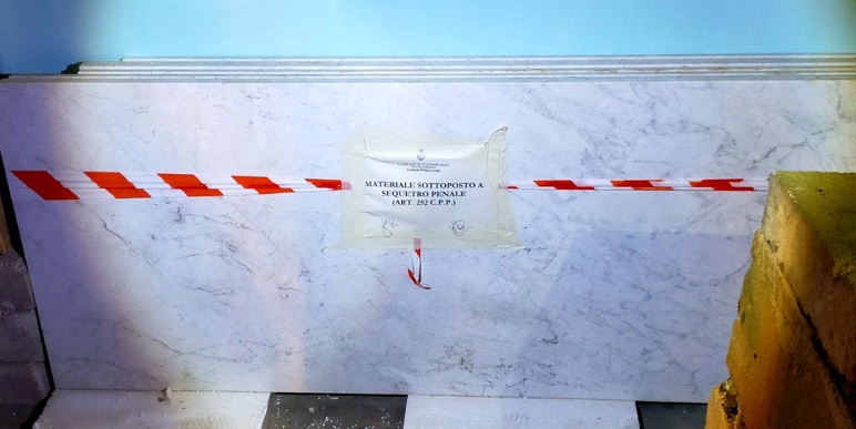 Durante la perquisizione, condotta con i carabinieri, sono state rinvenute, all’interno di un locale adibito a deposito in uso all’indagato, ben occultate, le lastre di marmo . La refurtiva è stata sequestrata e sarà restituita al legittimo proprietario.