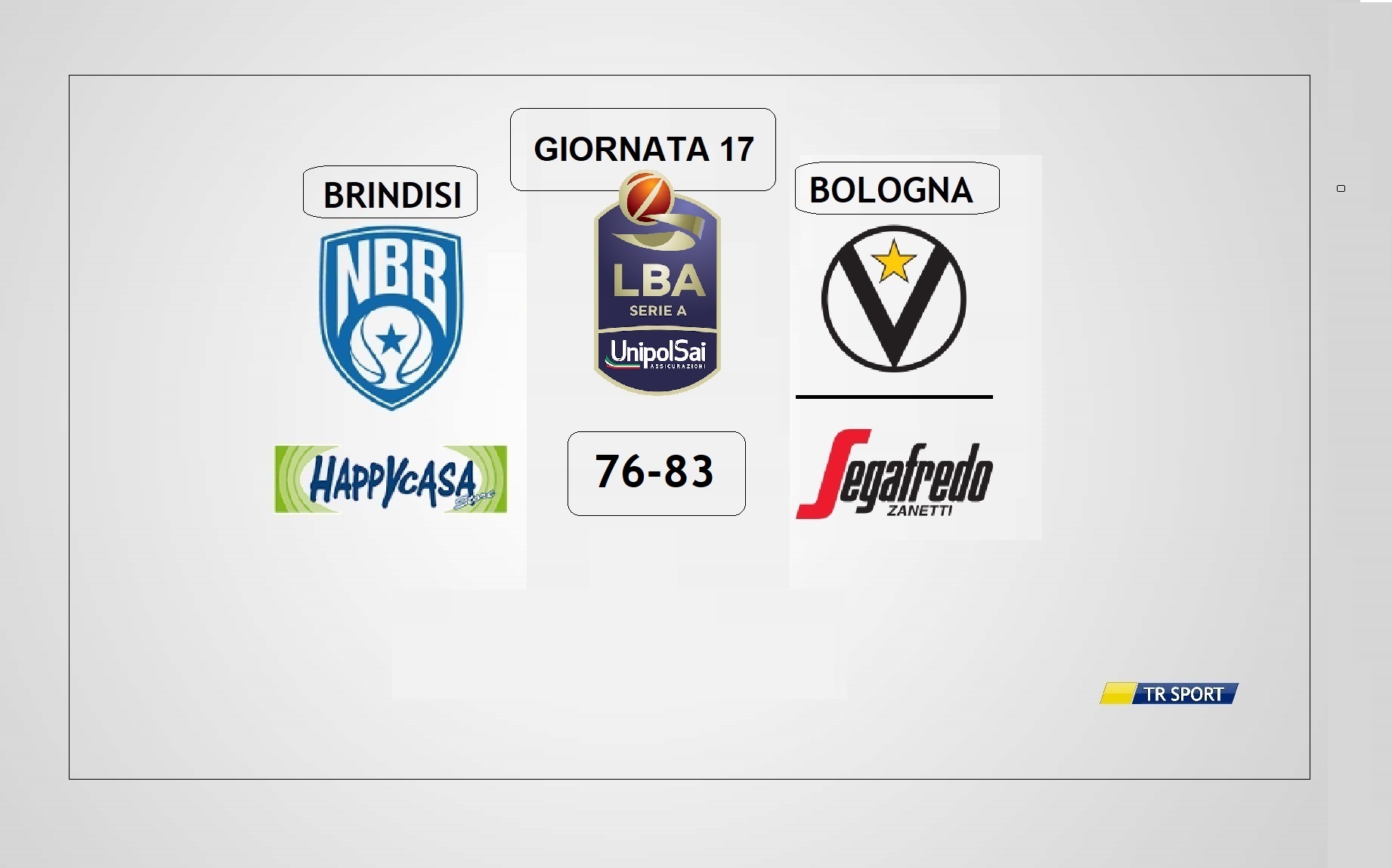 HAPPY CASA BRINDISI-VIRTUS SEGAFREDO BOLOGNA: 76-83 (16-19, 39-36, 48-62, 76-83)