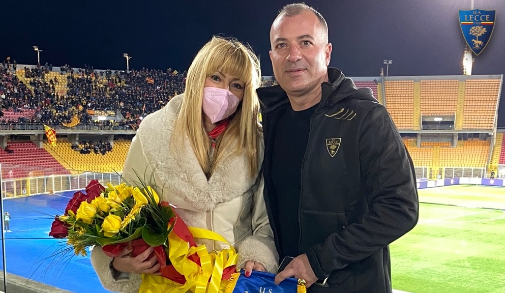 LECCE –  L’U.S. Lecce ha espresso massima solidarietà a Paola Vella, la presidente del Società Sportiva Dilettantistica Gallipoli Football 1909. Prima del fischio d’inizio di Lecce-Cittadella, il presidente Saverio Sticchi Damiani ha omaggiato la Vella con un mazzo di fiori e un gagliardetto ufficiale del club di Via Colonnello Costadura per esprimere solidarietà alla collega e come gesto di ferma condanna per i gravi insulti sessisti di cui la numero uno del club jonico è stata vittima nei giorni scorsi.