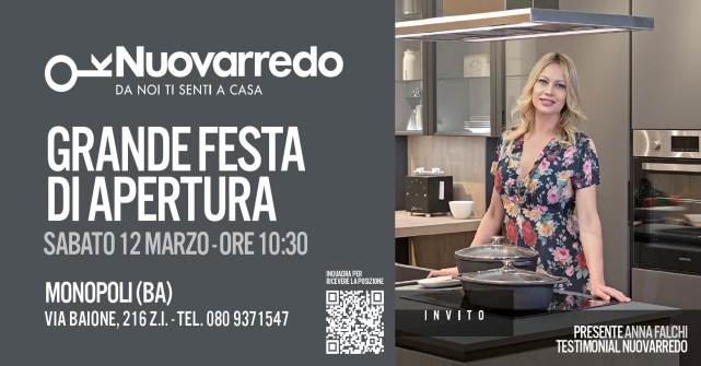 Grande festa a Monopoli dove il 12 marzo alle 10.30 aprirà il nuovo punto vendita di Nuovarredo, in via Baione 216 nella Zona Industriale.