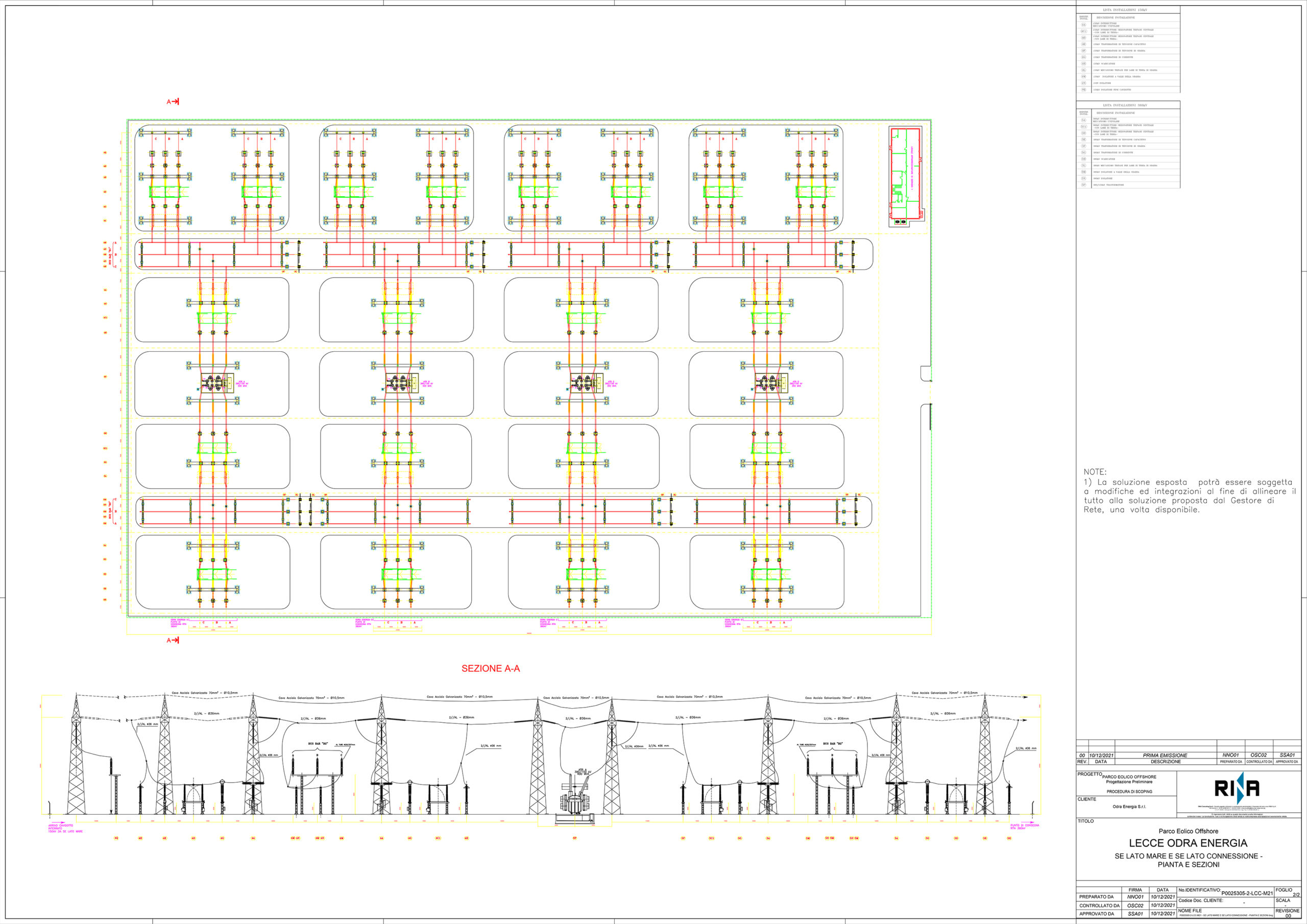Partiamo dal lato mare. Parte del cavidotto dovrà attraversare una zona speciale di conservazione e il Parco naturale regionale “Costa Otranto-S. Maria di Leuca e Bosco di Tricase”. La società intende risolvere la questione bypassando “in sotterraneo” la scogliera con la tecnica di approdo con HDD, cioè con la trivellazione orizzontale controllata. Non solo, in località La Fraula, a pochi metri da Porto Badisco e da strutture turistiche, è ipotizzata l’installazione della stazione elettrica lato mare, dove dovrebbe avvenire l’innalzamento del livello di tensione da 66 a 150 kV. È stata individuata una grande particella di 29 km2 a 300 metri dal mare e a 45 dalla provinciale 358. Per quanto sia già grande, “se richiesto, in fase successiva di avanzamento della progettazione potrà essere valutato l’utilizzo di ulteriori particelle attigue”, scrive nelle sue relazioni la società. Ma questo non è un luogo qualunque: una buona parte ricade in un habitat prioritario riconosciuto a livello europeo (Percorsi substeppici di graminacee e piante annue dei Thero-Brachypodietea), che per 4,4 ettari sarà attraversato dal percorso dei cavi e dal cantiere per la trivellazione della scogliera e per 2,8 ettari sarà, invece, occupato dalla stazione elettrica. Che prevede la costruzione di un locale apparecchiature di servizio di due piani e l’installazione di trasformatori di tensione e corrente, per un’altezza non indifferente, come si evince dalle sezioni grafiche allegate al progetto e che si riportano di seguito.