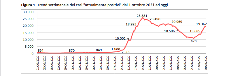 La curva è tornata a risalire dopo un trend in discesa cominciato l’11 febbraio ma che è durato meno di un mese. Intorno al 5 marzo i casi sono progressivamente aumentati. Si spera che non raggiungano il picco di quest’inverno che è stato registrato nella seconda metà di gennaio, con 25.881 positivi.