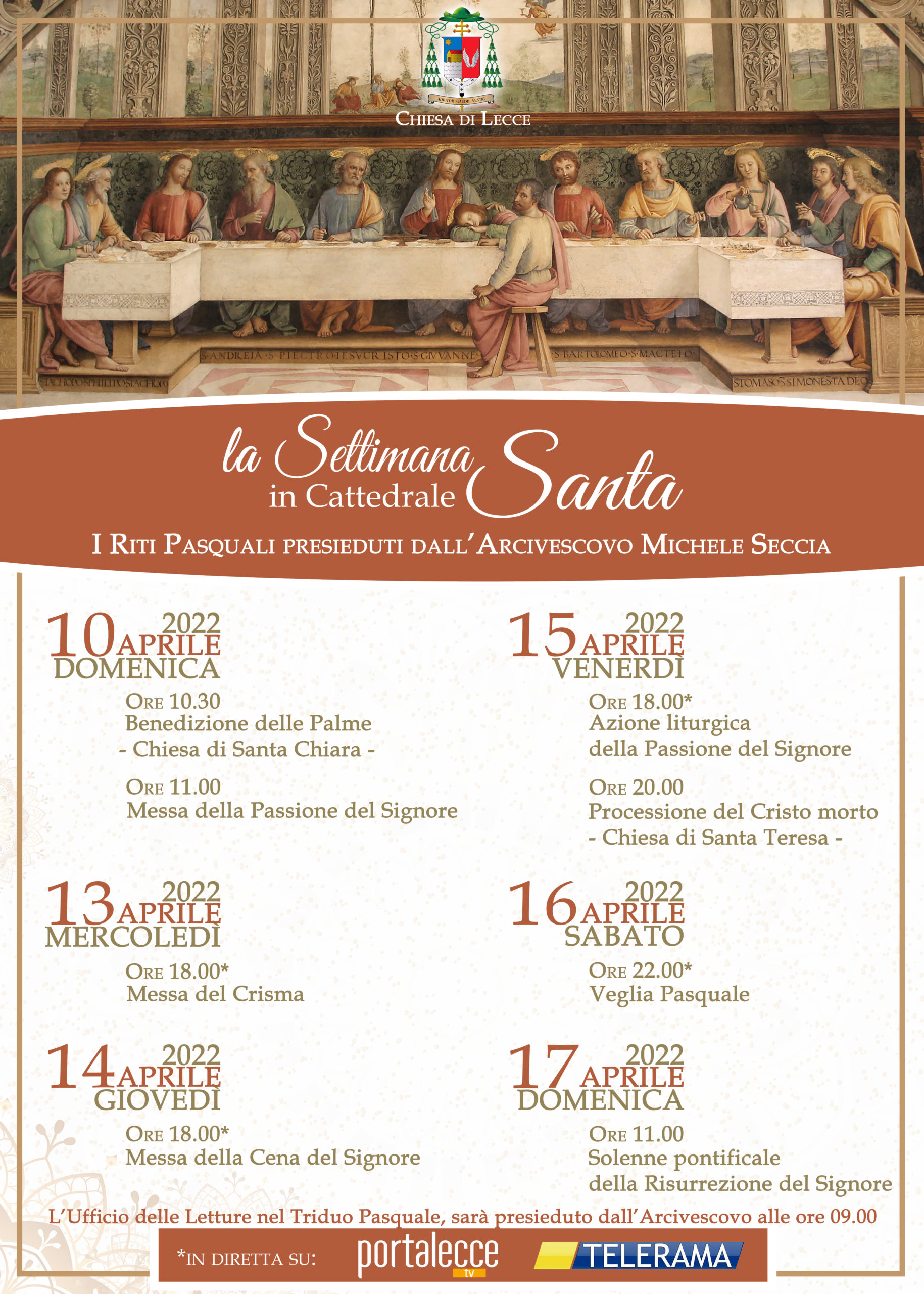 Le celebrazioni serali (dal Mercoledì Santo al Sabato Santo) saranno trasmesse in diretta da Telerama e sulla pagina Facebook di Portalecce.