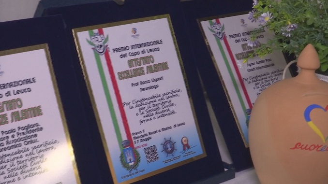 SANTA MARIA DI LEUCA – L’idea gli è venuta in America, dove va in scena l’Hall of fame award. E lui l’ha “salentinizzata”. Organizzato da Antonio Di Sabato, talento delle arti marziali, torna il “Premio Internazionale Capo di Leuca”, che presenta le eccellenze salentine. Nelle sale dell’Hotel Messapia Resort Santa Maria di Leuca, tanti amici si sono ritrovati per applaudire chi fa della qualità il proprio pane quotidiano. “Ci tengo -ha spiegato Di Sabato- a dare un riconoscimento a chi spesso lavora dietro le quinte e, in sordina, fa grande la nostra terra. Luna Fiore ha presentato la serata, allietata dalle note e dai passi della pizzica e non solo.