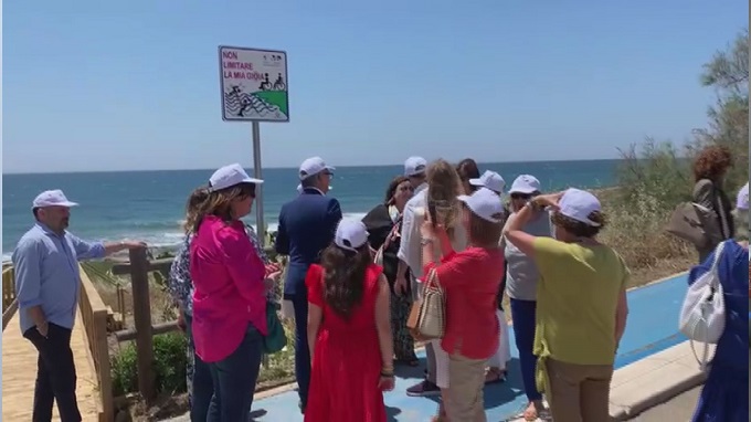 Poche ore dopo l’incontro istituzionale è stata scoperta una targa per la passerella a mare realizzata nella marina di Torre Suda.
