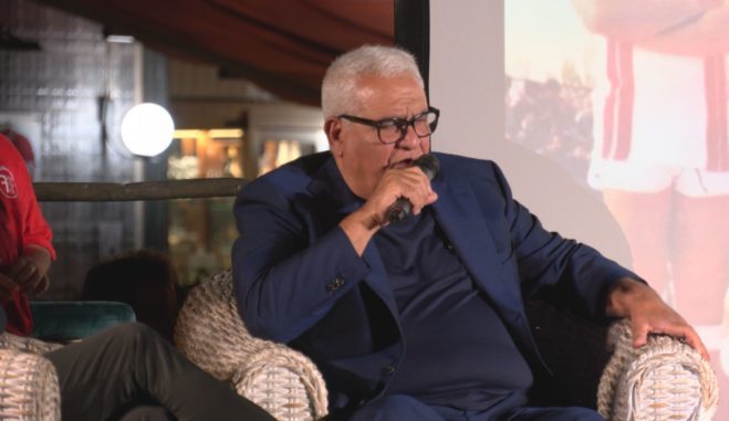 Dirigenti del Lecce, ex calciatori, editori, giornalisti televisivi e della carta stampata, amici del passato e del presente, collegamenti telefonici con personaggi televisivi, allenatori oggi di spicco diventati grandi grazie all’intuizione di Corvino… Tutti lì soltanto per lui. Non è mancato nulla nei festeggiamenti di un personaggio che ha dato lustro ad un intero territorio che non ha mancato di fargli sentire tutto il suo calore.