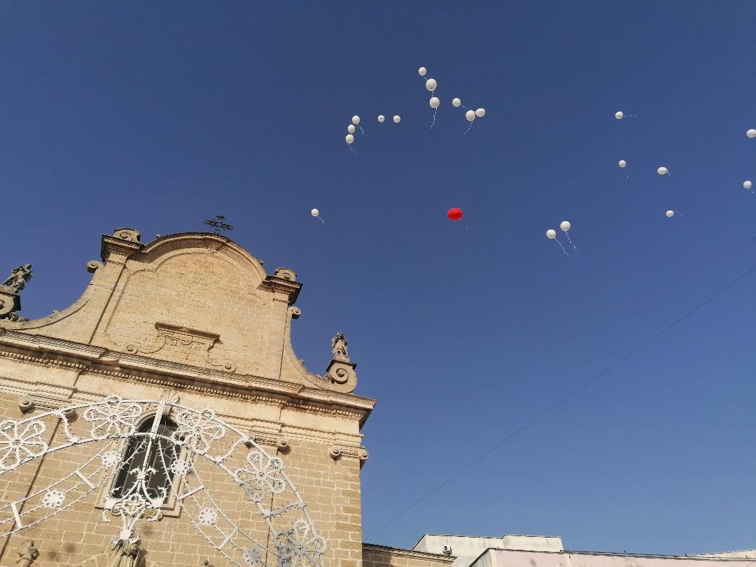 NOVOLI – Per l’ultimo saluto a Donatella Miccoli, assassinata dall’uomo che avrebbe dovuto amarla e proteggerla per tutta la vita, in volo decine di palloncini bianchi, tra i quali spicca un cuoricino rosso.