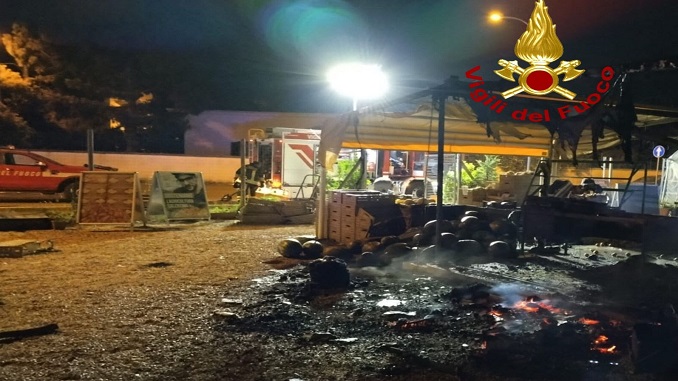 Per appiccare il fuoco, che ha divorato la struttura telonata provocando danni ingenti -non coperti da assicurazione- e incenerendo i prodotti in vendita, sono state usate delle bottiglie di plastica contenenti liquido infiammabile.