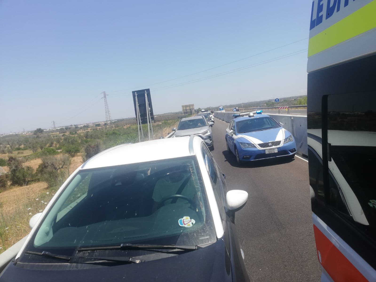 L’incidente è avvenuto all’altezza dello svincolo per Galatone, in un tratto interessato da lavori che in questi giorni stanno provocando disagi e anche polemiche per il notevole restringimento della carreggiata.