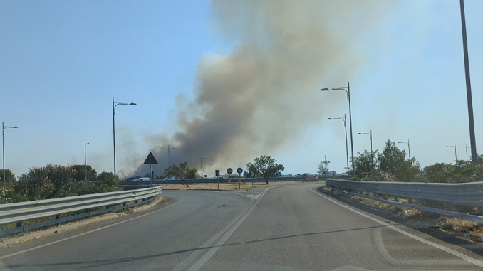 Grosso incendio lungo la Lecce-Gallipoli: paura per le auto in transito