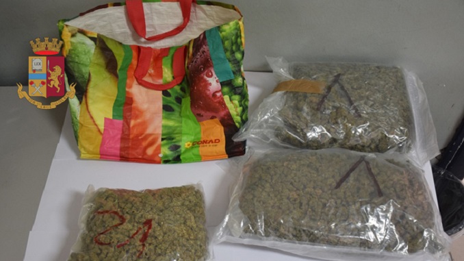 “Cosa trasporta?” “Marijuana”. Arrestato con 3,3 kg di stupefacente nella borsa della spesa
