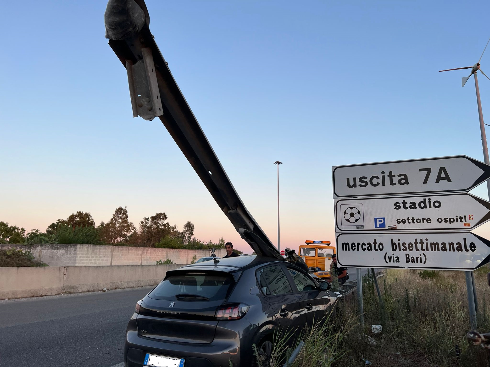 LECCE- Ancora un pauroso incidente sulla Tangenziale est, nei pressi dello svincolo per il mercato ortofrutticolo. Dopo l’episodio avvenuto lo scorso maggio, ecco che nel tardo pomeriggio un’altra auto   ha perso il controllo andando a schiantarsi contro il guard rail, che a sua volta è penetrato all’interno dell’abitacolo. Tanta paura, ma  fortunatamente senza gravi conseguenze per  il conducente della vettura, che è stato trasportato in codice giallo al Fazzi di Lecce.